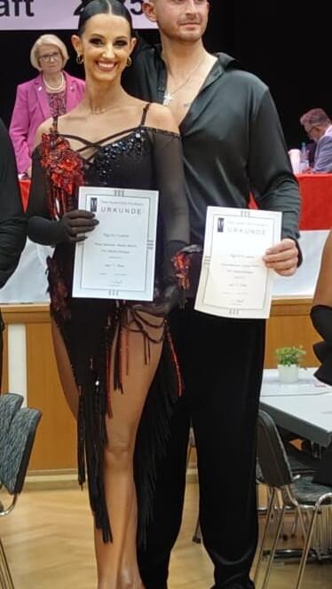 Am Samstag starteten als erstes Paar Melina März und Robin Fritz in der Hauptgruppe C Latein. Gestärkt durch ihren Trainer Pierre schafften sie es ins Semifinale und konnten einige Paare hinter sich lassen.